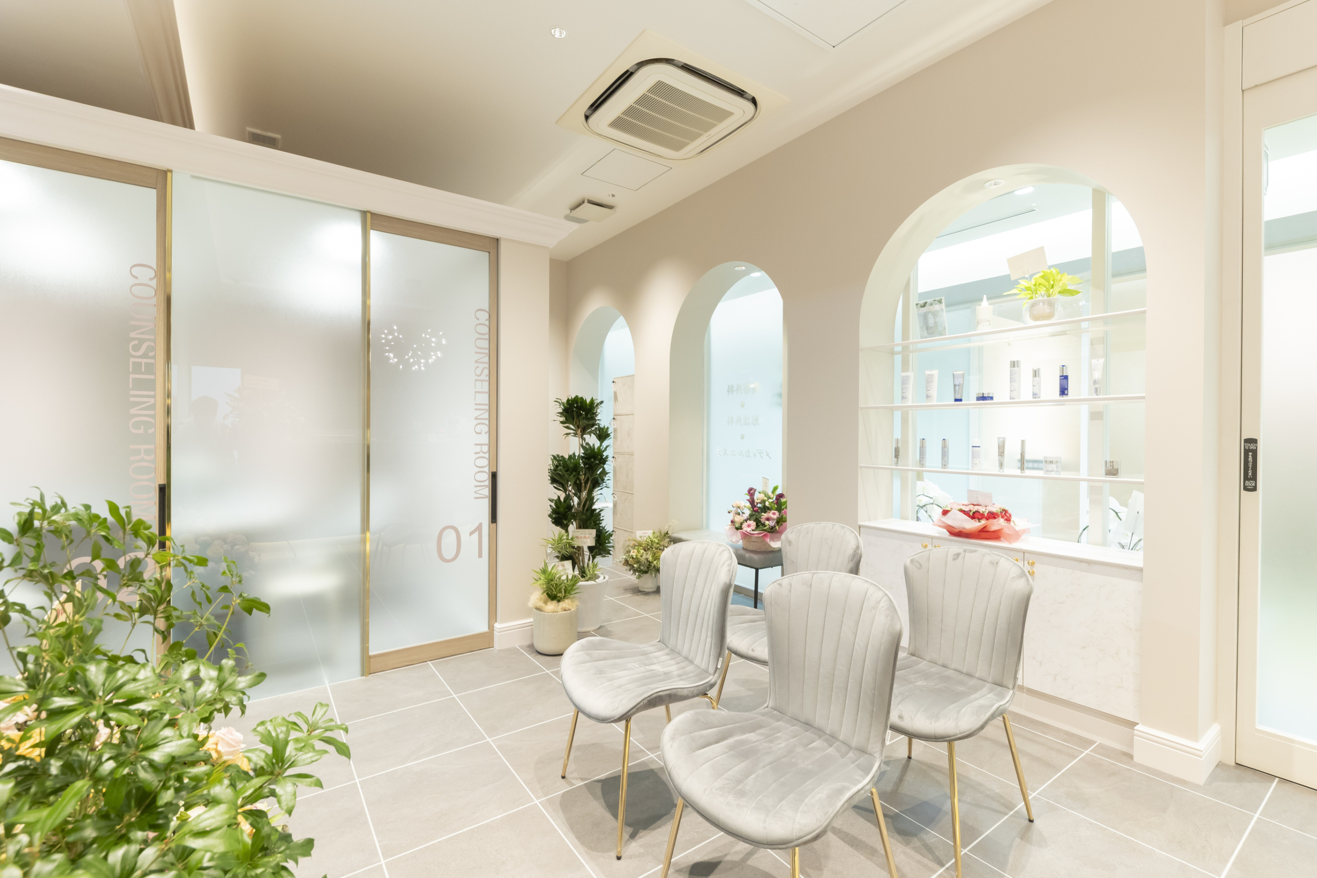 施術フローに沿ったスムーズな動線計画により、一人ひとりが落ち着いて過ごせるプライベートクリニックのようなパーソナル空間を構成。