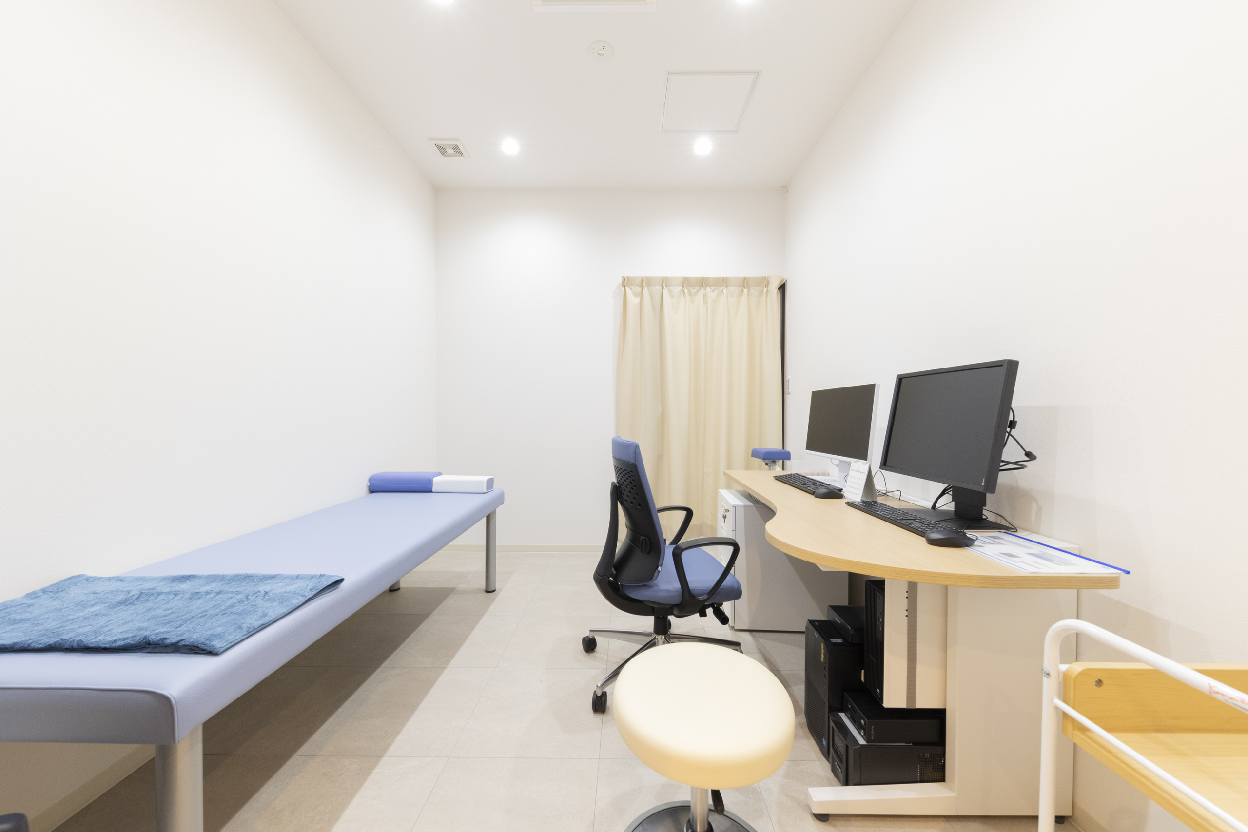施主様のこだわりとして、高齢の患者様にも配慮し、診察室はベッド周りをしっかり回れる横幅を確保。
